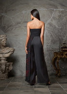 The structured bandeau neckline highlights the shoulders with understated allure, while the fluid drape of the trousers ensures elegance with every step. A perfect fusion of bold drama and feminine artistry, this piece is designed for women who seek effortless impact at soirées, cocktail evenings, and modern celebrations.